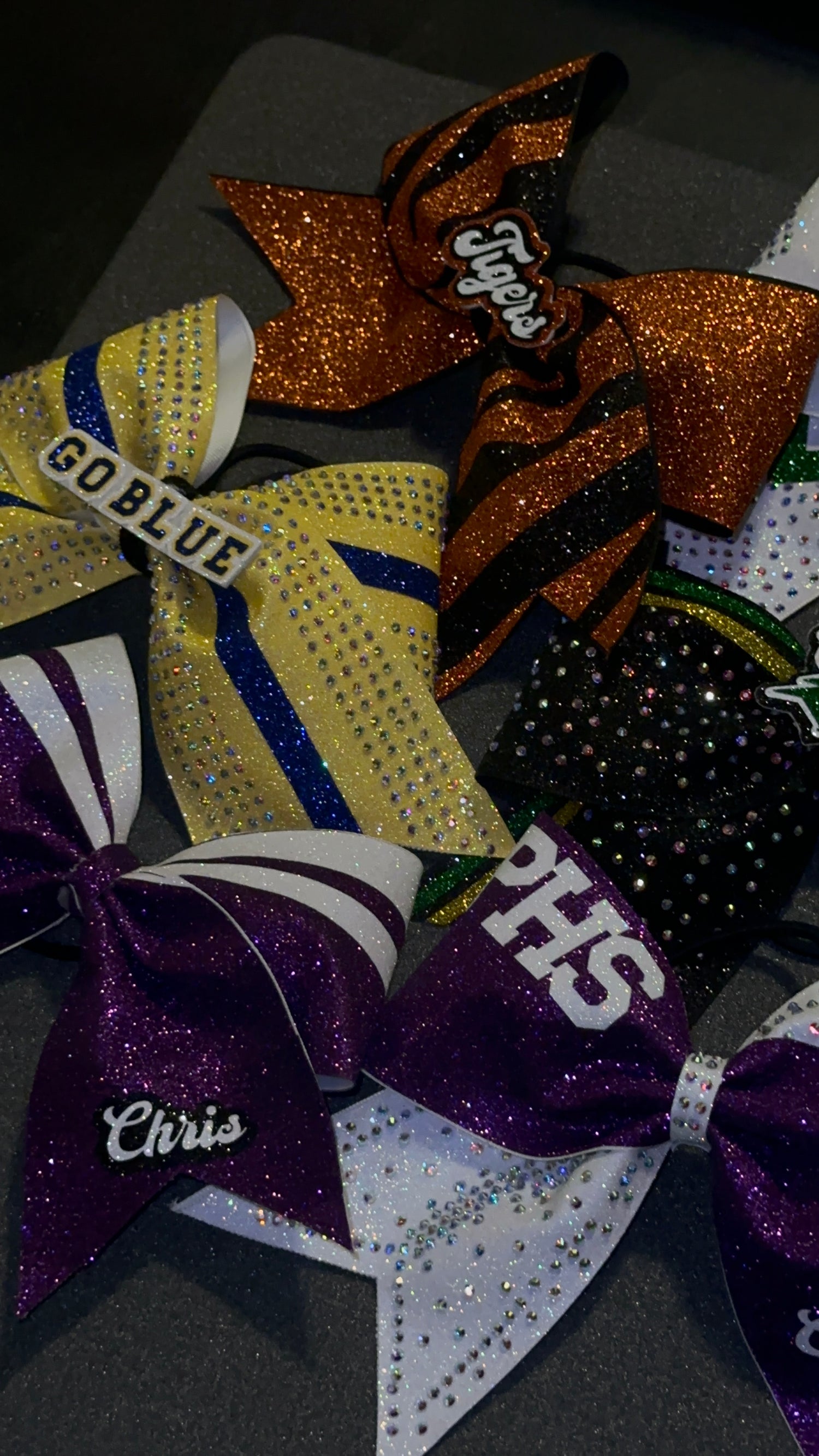 Explore our collections or contact us to design your ideal accessory. Whether for a cheer team or to enhance your everyday style, our custom hair bows are crafted to help you make a statement.